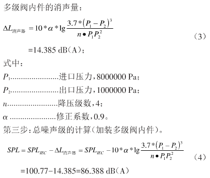 由于介質為汽體,多級節流降壓相當于節流減壓排氣消聲器,故消聲量的計算按照多級降壓消聲器的公式計算。
