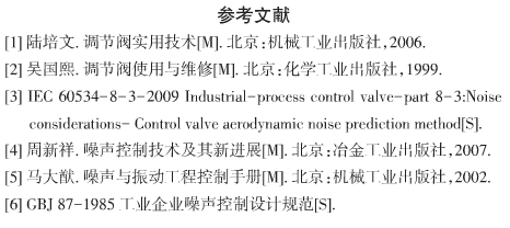 通過以上設計參數,根據IEC標準預測計算未加入多級節流降壓元件時,噪聲值為100.77dB(A),采用多級節流降壓元件降噪(降噪量為14.385dB(A))后,噪聲值降為86.388dB(A),低于90dBA的限制要求,說明設計合理。此計算方法可為調節閥的設計提供參考。