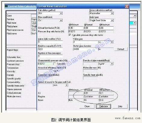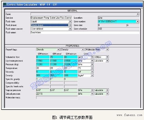 口徑過小,會使調節閥不能通過工藝對象要求的最大流量,或使能耗增加;口徑過大,不僅使投資增加,而且使調節閥經常在小開度條件下工作,可調比減小,調節性能變壞,容易造成控制系統不穩定。口徑的選擇和確定主要依據閥的流通能力CV。下面介紹以CFD18-1工況條件下,管道為4〃,使用Intools儀表軟件計算調節閥的CV值。將需要的工藝參數添加到軟件相應的位置中,如圖1,計算結果如圖2。