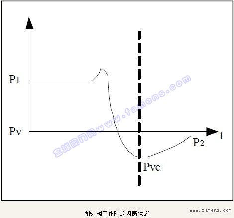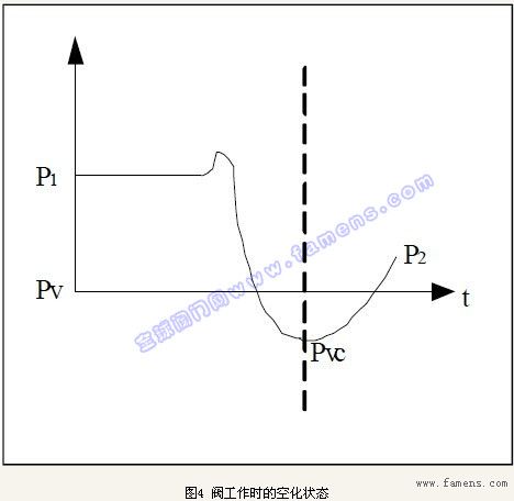圖3用來表示流體介質流經閥體內部的壓力變化:P1閥的入口壓力;P2閥的出口壓力;Pv閥入口溫度下的液體飽和蒸汽壓;Pvc流體縮流斷面的壓力。