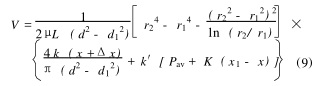 r 1 , r 2 ———表示層流斷面的半徑 , 分別為 d 1 , d 2的 1/ 2 , m