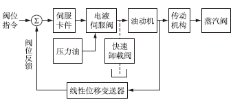 圖2為GV3的控制原理圖。由圖2可知,GV3為閉環(huán)控制,閥位指令信號與閥位反饋信號比較后形成閥位偏差信號,經(jīng)伺服放大器轉(zhuǎn)換成電流信號并進行電功率放大,接著在電液伺服閥中將電信號轉(zhuǎn)換成高油壓信號,用以驅(qū)動油動機,進而通過傳動機構(gòu)改變閥位。線性位移變送器測量的閥位信號反饋至調(diào)節(jié)回路的輸入端,使閥位偏差信號逐漸減小。當閥位偏差為零時,系統(tǒng)便達到新的穩(wěn)定狀態(tài)。