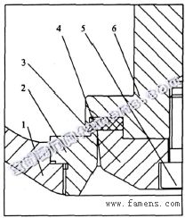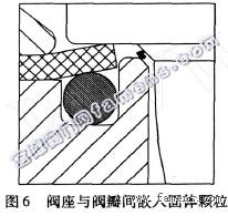 對于夾帶固體顆粒的流體介質,軟閥座閥門的密封結構更為重要。這主要是因為介質中夾帶有固體顆粒時,極容易卡在閥瓣和閥座的密封面之間,妨礙了閥座的密封,會引起泄漏,繼而由于介質的高速沖刷而使閥座表面被沖蝕破壞。對于上述具有二級關閉作用的軟閥座密封結構(圖6),即使出現了這種顆粒卡在閥瓣和閥座金屬密封部位之間,也不會有什么危害,因為還有閥瓣和軟閥座之間的密封,仍能起到可靠有效的補充密封作用。