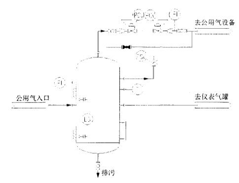 自力式調(diào)節(jié)閥在公用氣系統(tǒng)中的應(yīng)用如圖2所示 ,為一個(gè)背壓閥和減壓閥的組合 ,其功能是將公用氣罐出來(lái)的公用氣穩(wěn)定在一個(gè)范圍內(nèi),海上平臺(tái)常取500~800 kPaG 。